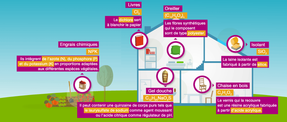 « Chimie »... Dans l'imaginaire commun, ce mot évoque souvent un savant un peu fou en train de mélanger des produits dans un laboratoire en désordre où des centaines de fioles se remplissent de poussière sur des étagères. Cette image fait souvent oublier que la chimie est une science rigoureuse qui étudie la constitution de la matière. Elle s'intéresse aux atomes* qui s'assemblent de manière organisée et structurée pour former des molécules* ainsi qu'à tous les mécanismes, processus et interactions dans lesquels ils interviennent. On associe également souvent produit chimique à produit dangereux. Ce n'est pas forcément le cas. Toute matière est un produit chimique ou un mélange de produits chimiques.